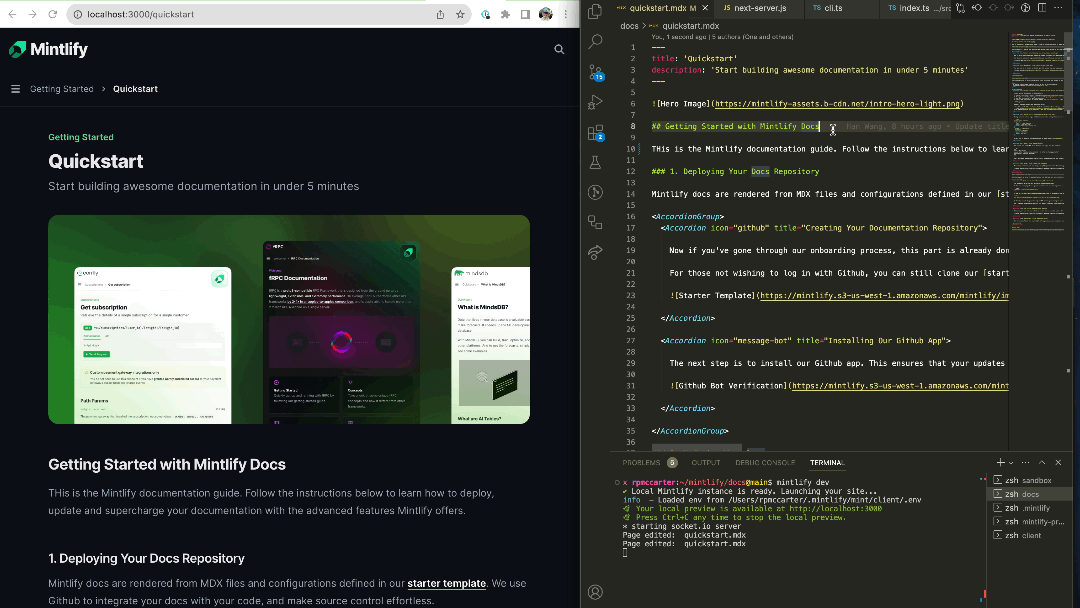 The newest version of our Mintlify CLI is out! With this upgrade, you can now preview your local changes and enjoy much faster page load speeds (because, like, who wants pages that move slower than me pre-caffeine on a Monday morning).