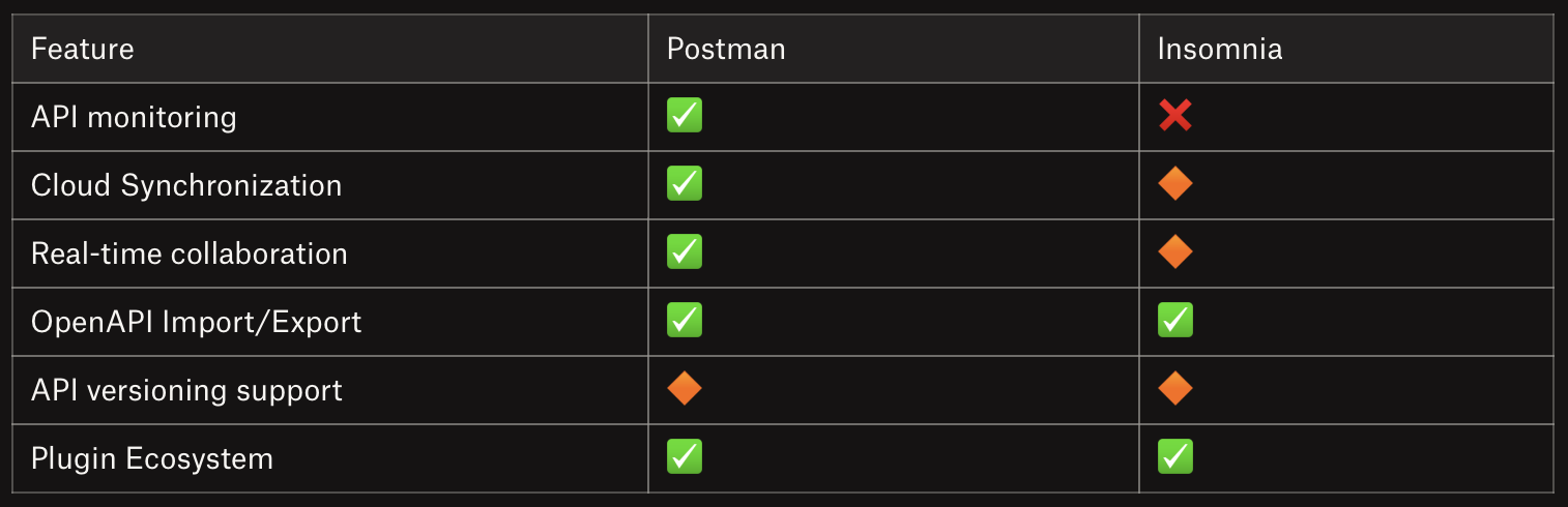 Insomnia is a solid choice if you want a simple, fast tool to test and work with APIs like REST, GraphQL, gRPC, and WebSocket. It's lightweight, works on any platform, and has all the basics you need, like environment variables, authentication, mocking, automated testing, and some easy documentation.
