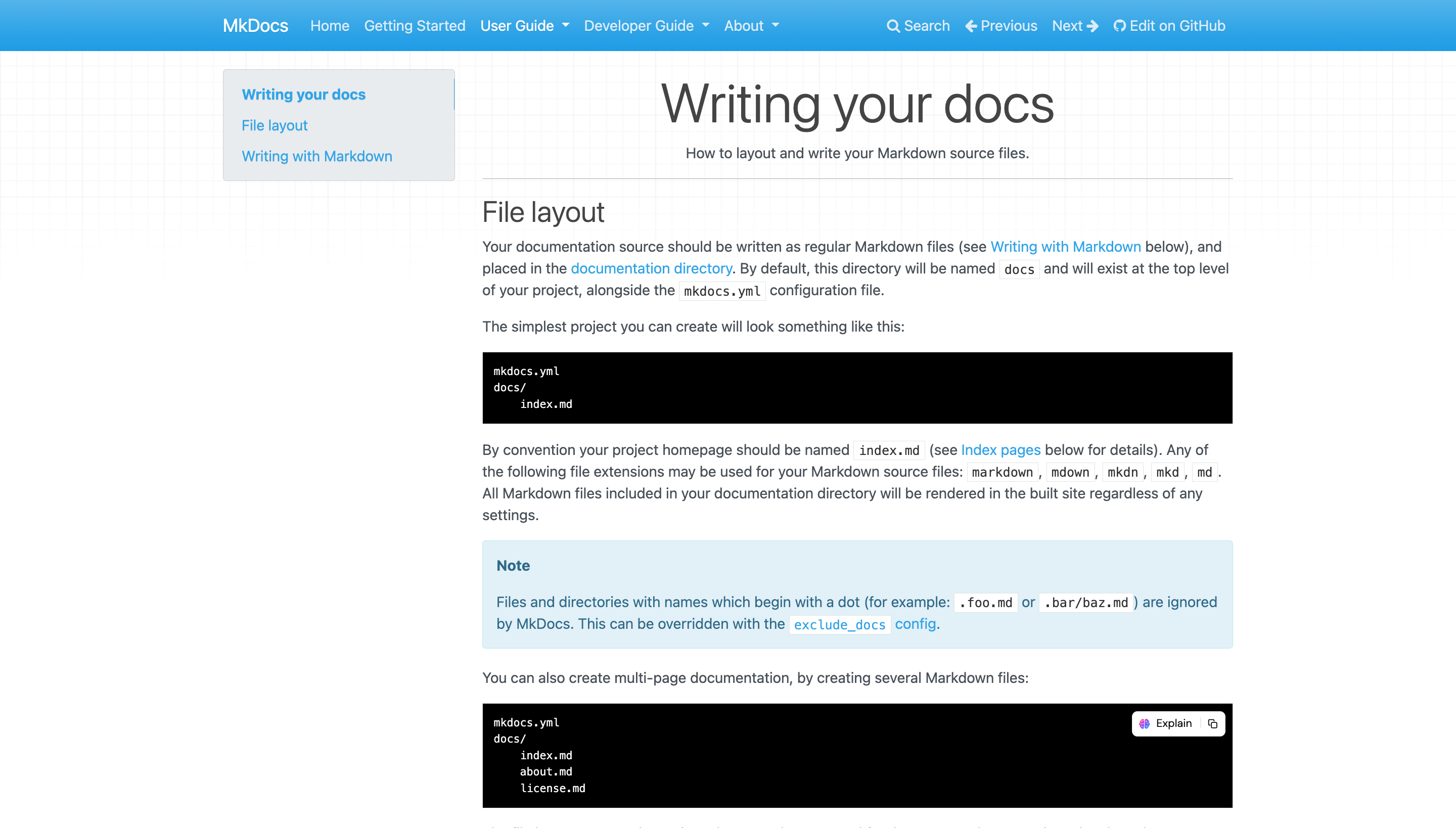 - Customizing MkDocs at a deeper level, like creating plugins, does require Python knowledge, which can be a challenge for non-developers.