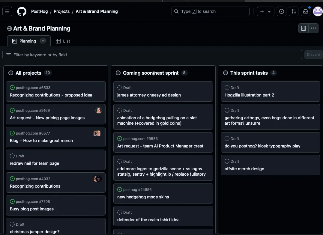 We're anti-tool sprawl. Instead of having documents or tickets spread across a dozen tools, we exclusively use GitHub. Everything from copy changes to roadmap planning is traced back to a pull request in GitHub.