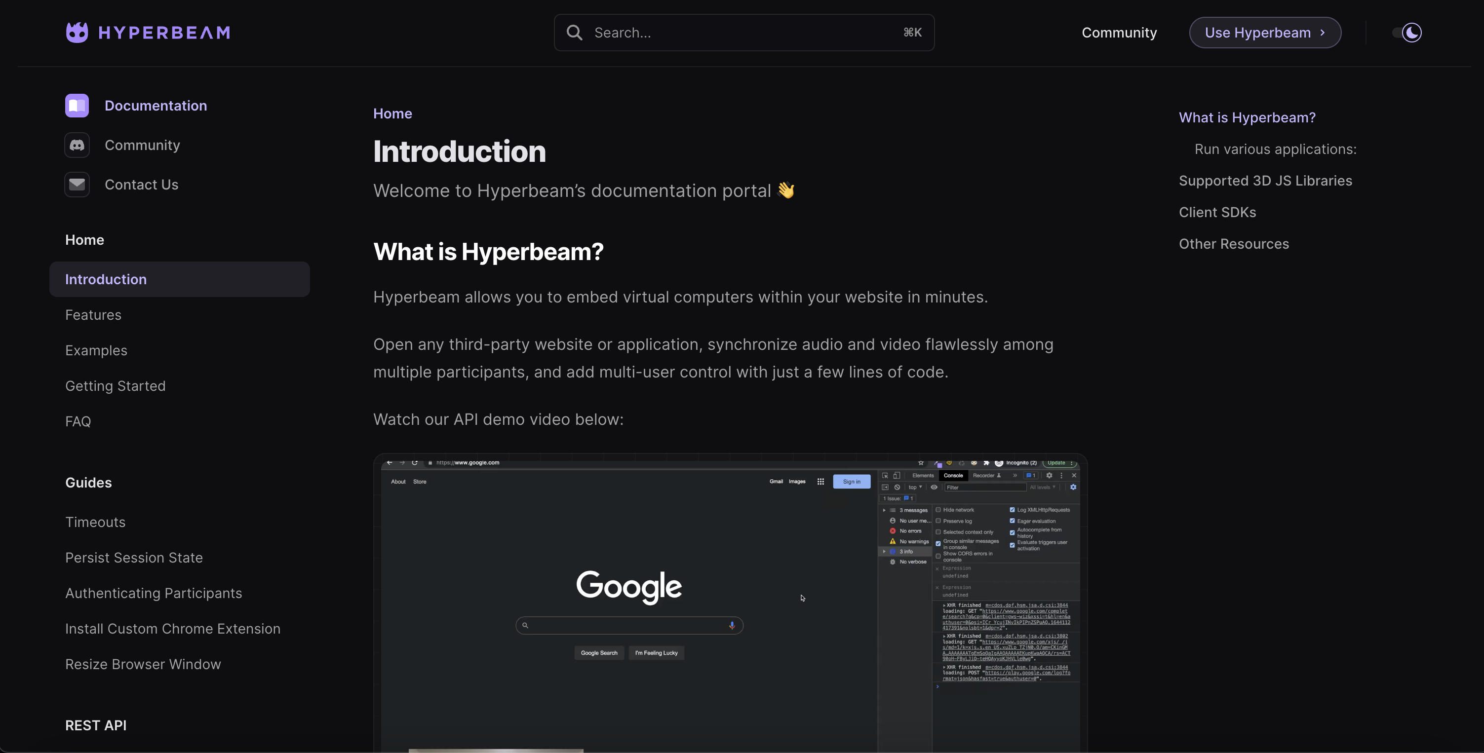 We went ahead and migrated his documentation. On top of reviewing their content, we built a simple webpage that housed Hyperbeam's new and improved documentation. It was a literal brick page. We did not even have any functions that would've allowed Hyperbeam to update their content.