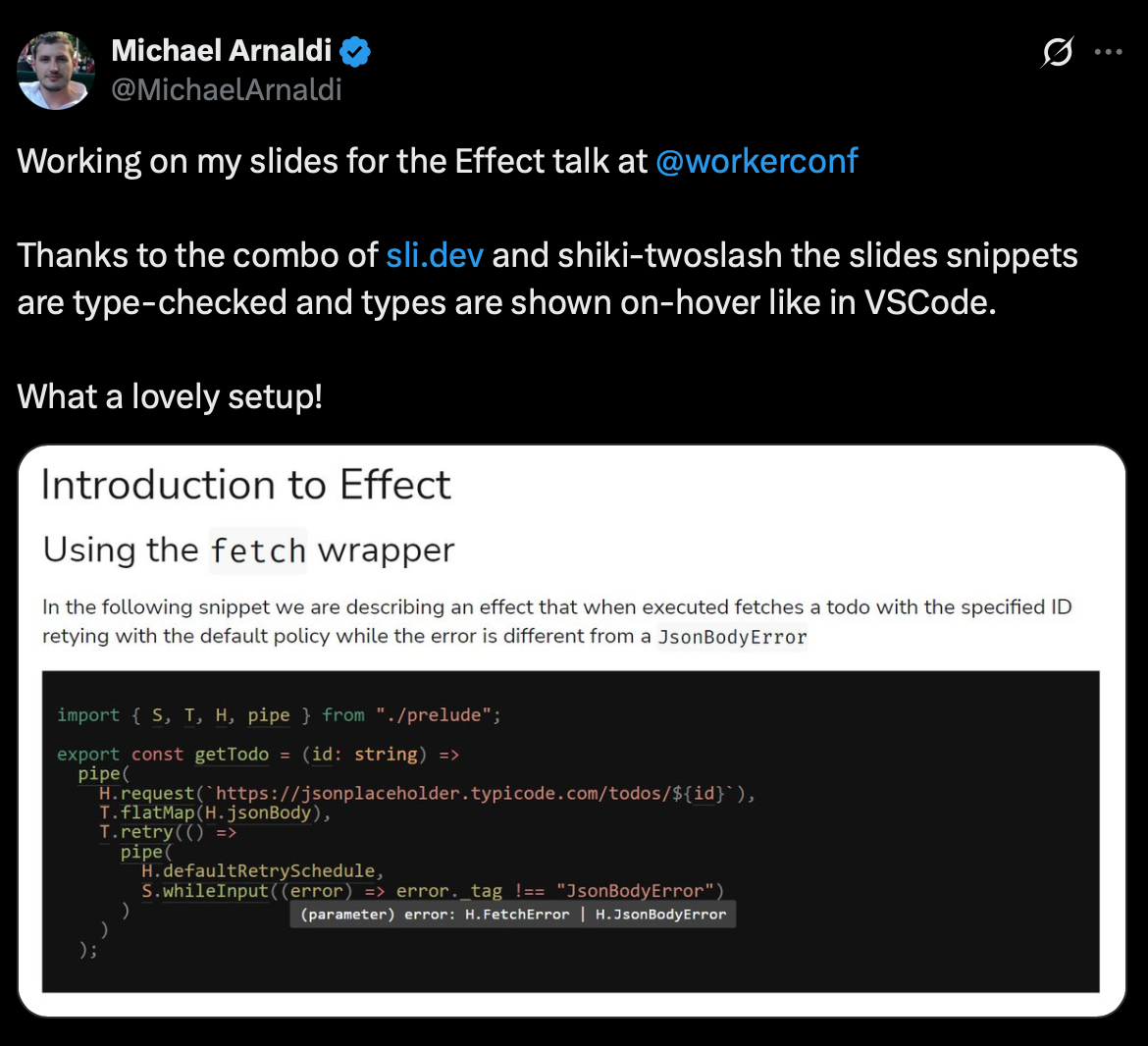 Twoslash brings IDE-quality type inspection right into your documentation. You can hover over variables, functions, and parameters to see inferred types or catch errors the way you would in VS Code.