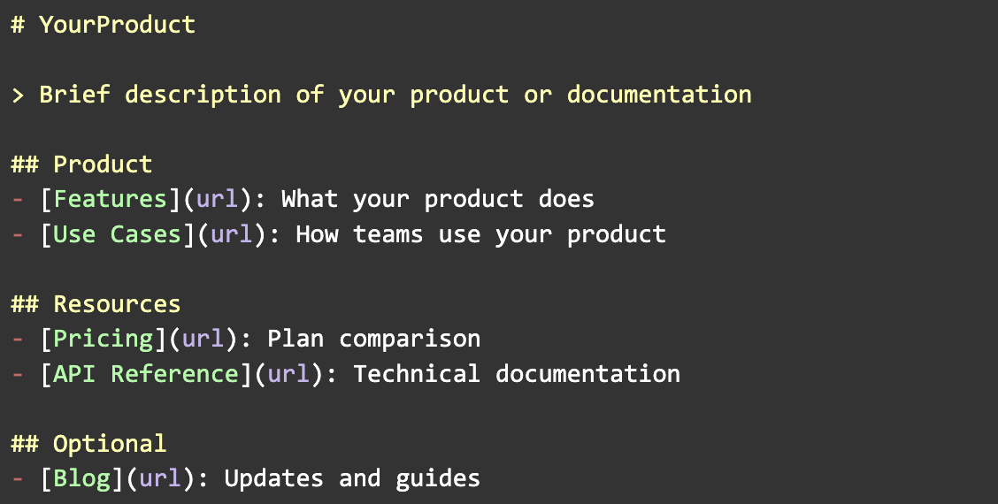 Tradeoffs: When you add new pages or restructure your docs, you'll need to update the llms.txt file manually. For documentation that changes frequently, this can become a maintenance burden.