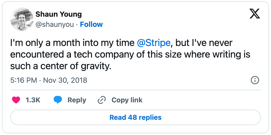 There are few companies that have embedded writing into their culture more than Stripe. The company has a press that publishes books, an engineering magazine, and one of the most widely read engineering blogs of any company in Silicon Valley.