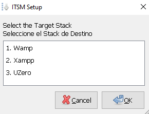 Choose your installed stack (WampServer, XAMPP, or UniServerZ)