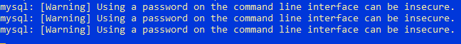 MySQL displays a warning because the password is entered on the command line: