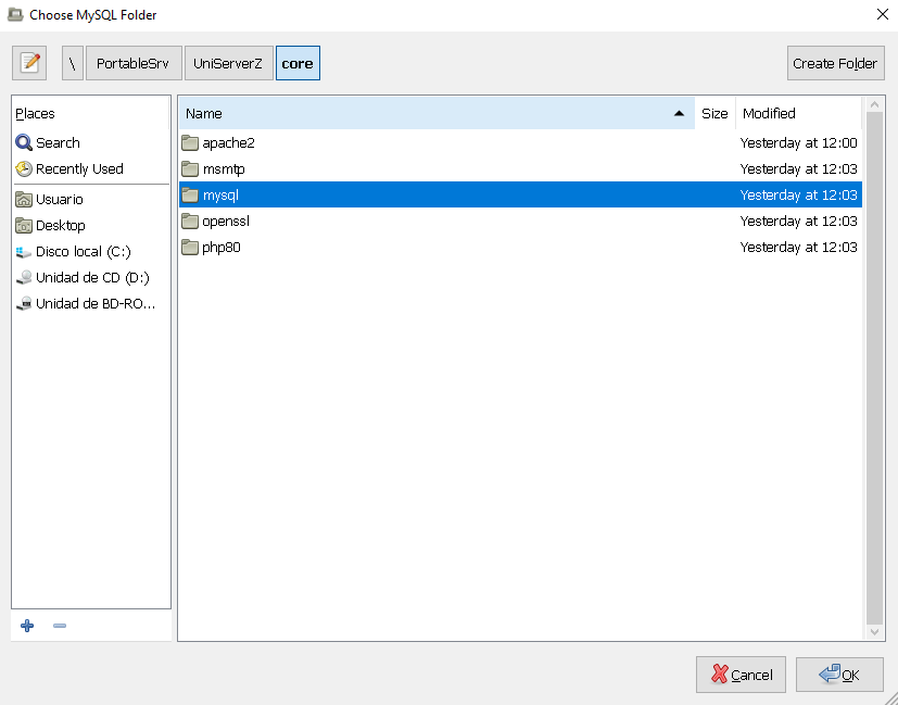 - BACKUP: Copies from MySQL data folder to